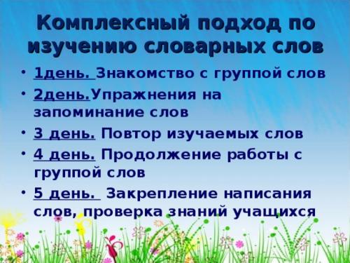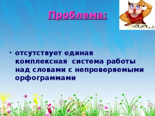 - отсутствует единая комплексная система работы над словами с непроверяемыми орфограммами
