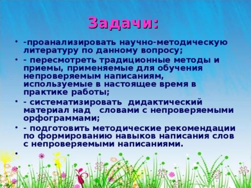 - - пересмотреть традиционные методы и приемы, применяемые для обучения непроверяемым написаниям, используемые в настоящее время в практике работы;