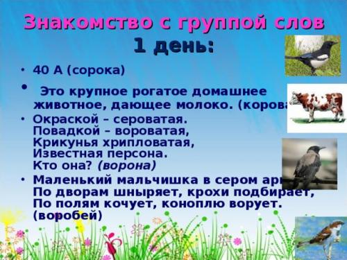 - знакомстве со словарными словами ребенку отводится пассивная роль;