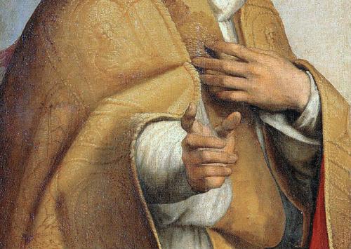 Рафаэль Санти - Афинская школа Фреска Станца делла Сеньятура музея Ватикана - 15116 пальцев, согласно распространенной версии, имеет на правой руке папа римский Сикст II, изображенный Рафаэлем на картине "Сикстинская мадонна". Если присмотреться, становится видно, что "шестой палец" - это часть внутренней стороны ладони. Но любители выискивать тайные символы продолжают настаивать, что Рафаэль таким образом подчеркивает, что это именно епископ Рима святой Сикст (то есть, шестой).