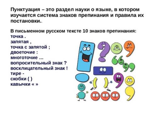 Пунктуация – это раздел науки о языке, в котором изучается система знаков препинания и правила их постановки. .