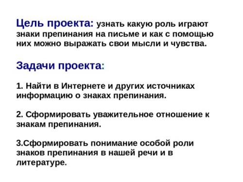 Цель проекта: узнать какую роль играют знаки препинания на письме и как с помощью них можно выражать свои мысли и чувства.