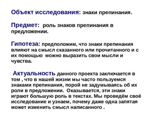 Гипотеза: предположим, что знаки препинания влияют на смысл сказанного или прочитанного и с их помощью можно выразить свои мысли и чувства.