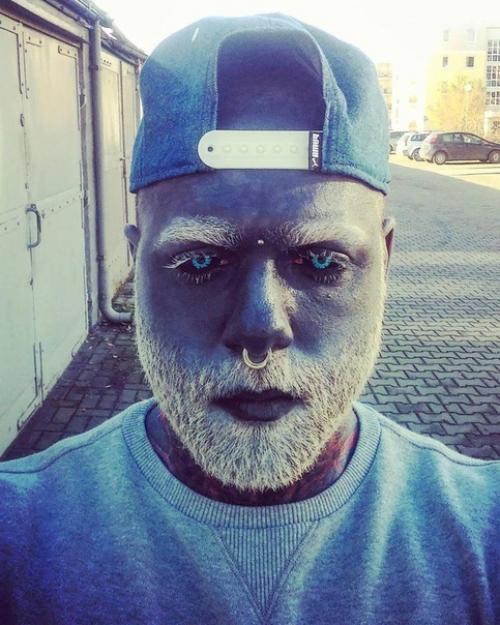 Мужчина по-настоящему татуировками одержим. 90%. Его тела чернилами покрыты