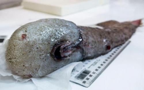 На такой глубине, при температуре всего 1 градус цельсия все живое испытывает сильнейшее давление и процессы формирования новых видов происходят не так, как на поверхности. Так, у данного образца полностью отсутствуют признаки, формирующие головную часть рыбы: глаза, обонятельные отверстия, а рот и жаберные отверстия сформированы внизу туловища. Интересныефакты мы неодни.