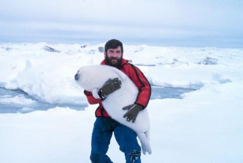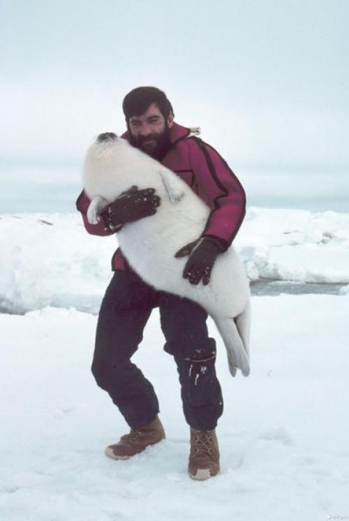 Брутальный пилот вертолёта бадд кристман и его друг - детеныш полосатого тюленя.