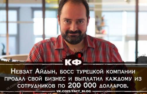 У главы интернет - сервиса для заказа еды Невзата Айдына был очень успешный бизнес. И когда он продал его за баснословные деньги - 589 млн долларов, он решил, что настала пора отблагодарить всех, кто работал с ним, - и выплатил каждому из 114 сотрудников единоразовые бонусы по 200 тысяч долларов.