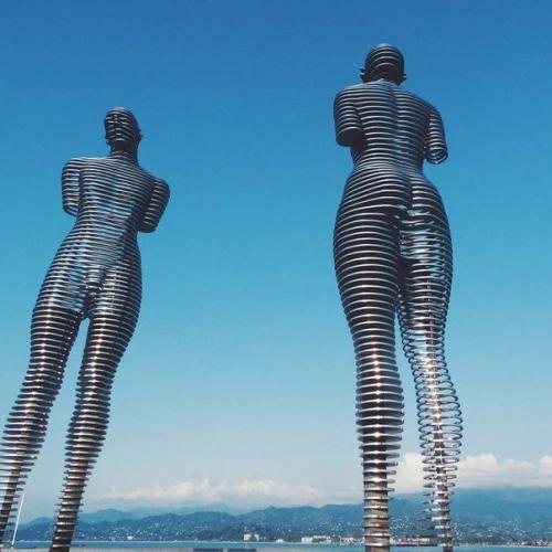"Мужчина и Женщина" - 8-метровая движущаяся стальная скульптура, созданная грузинским скульптором Тамарой квеситадзе. Расположенная на побережье города батуми, она символизирует собой мусульманского парня али и грузинскую княжну Нино, - героев известного романа азербайджанского писателя Курбана Саида ( "Али и Нино", 1937 год. Трагическая история завершается разделением влюблённых с приходом на территорию страны советских войск.