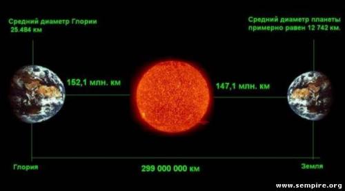 По гипотезе к. Бутусова, астронома и кандидата физико-математических наук, на орбите земли существует еще одна планета, называемая анти - землей или глорией. По словам астронома, за солнцем должна быть либрационная точка, которая довольно неустойчива. В этом месте и должна находиться анти - земля. Наша планета и Глория вращаются вокруг солнца с одинаковой скоростью, поэтому с земли ее увидеть невозможно, ее закрывает диск солнца.