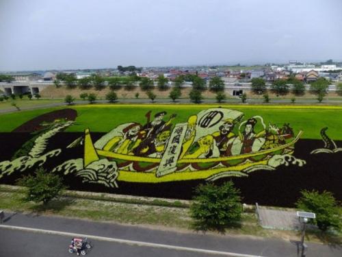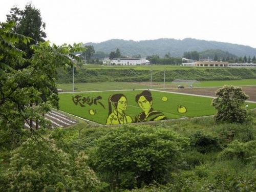С 1993 фермеры японской деревни инакадате в префектуре аомори создают тщательно продуманные картины на рисовых полях, смешивая множество сортов риса для крупномасштабных произведений искусства. Ежегодно эти фермеры прививают рис различного цвета, чтобы создать новые картины, которые затем сохраняются на протяжении всего сельскохозяйственного сезона до сбора урожая .