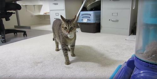 Изобретатель Бен миллиам создал удивительную машину, которая полностью изменит наши представления о кормлении котиков. Он научил свою кошку манки искать спрятанные по дому пластиковые шарики и кидать их в машину. Как только машина распознает шарики с радиочастотной идентификацией, активируется кормушка.