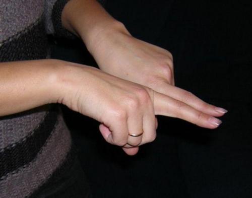 - И дальше сгибаете мизинчик в том месте, где у вас указательный, толкая его при этом большим в сторону к пальцам.