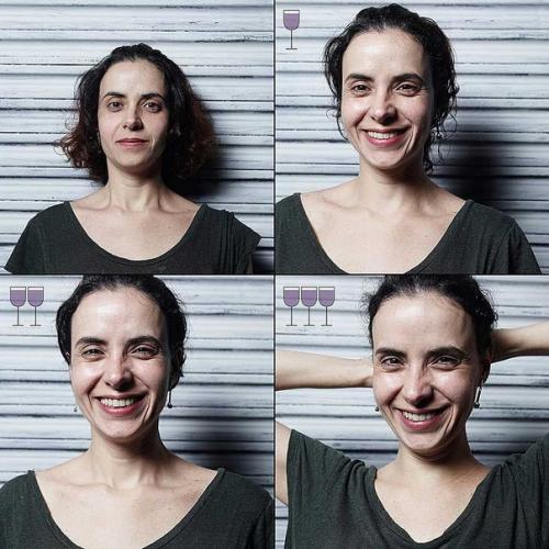 Фотограф Маркос Альберти сфотографировал несколько своих знакомых девушек трезвыми, а потом попросил выпить их три бокала вина. После каждого бокала он снимок делал.