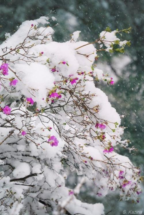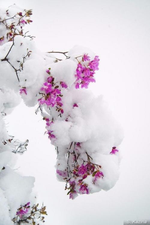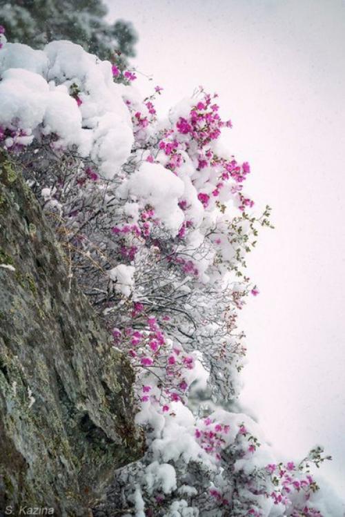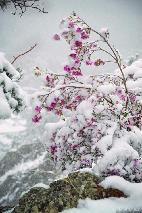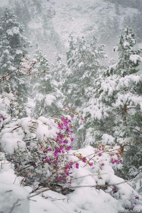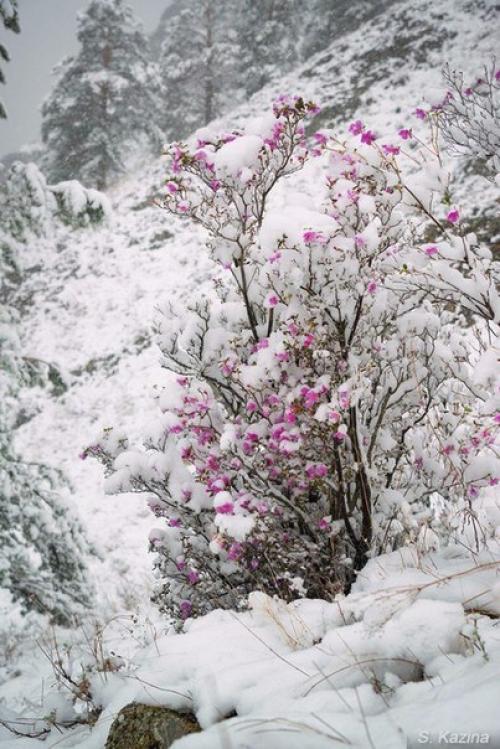 Не успел на Алтае зацвести маральник, как на следующий день пошёл снегопад.