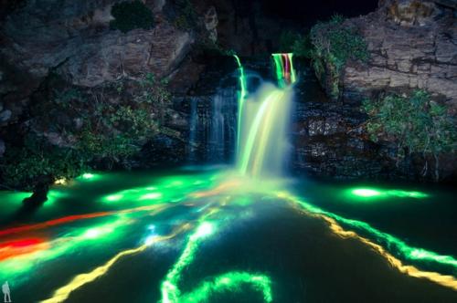 Фотографы Шон Ленц и Кристоффер абилдгаард сделали серию интересных снимков с большой выдержкой (от 30 секунд до 7 минут), используя светящиеся химические палочки. Съемки на водопадах северной Калифорнии проходили. Вашему вниманию предлагаются лучшие фотографии из этой серии .