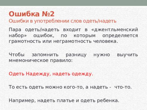 Ошибка №2 Ошибки в употреблении слов одеть/надеть