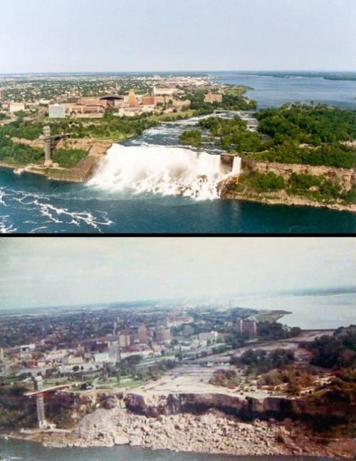 В 1969 году власти США и Канады пустили Ниагару по новому искусственному руслу, чтобы остановить эрозию. На время проведения работ Ниагарский водопад оказался высохшим.
