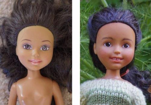 Она всегда считала, что куклы могли бы выглядеть гораздо менее вызывающими. Соня создала проект Tree Change Dolls - она покупает в комиссионных магазинах старых кукол и меняет их до неузнаваемости, стирая агрессивный макияж.