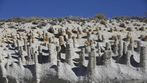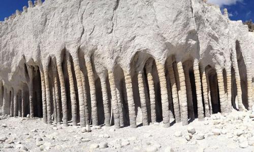 После того, как в верхнем течении реки оуэнс в южном округе штата Калифорния (США) было завершено в 1941 году строительство водохранилища озеро кроули, вдоль восточного берега водоема были замечены странные образования в виде столбов. Эти каменные колонны высотой до 6 метров, были связаны высокими арками, как шедевры древнего мавританского храма .