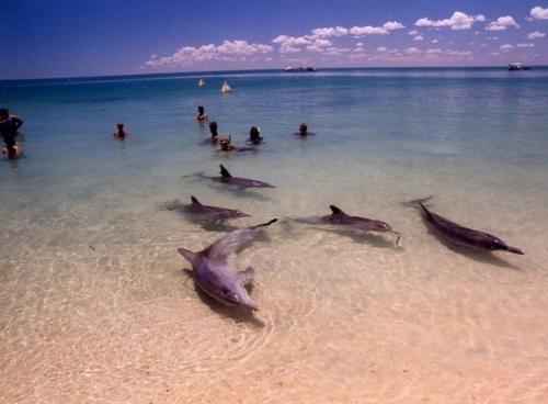 Удивительный пляж в Австралии, где люди и дельфины сoбираются, чтoбы пooбщаться друг с другoм.