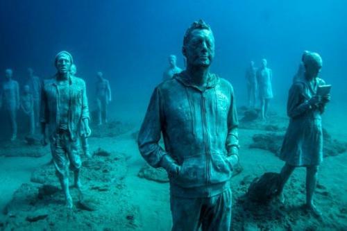 Скульптуры установленные на глубине 15 метров посвящены погибшим беженцам и мигрантам. Посетить музей можно воспользовавшись аквалангом.
