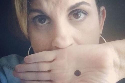 Женщина черную точку на ЛАДОНИ нарисовала.